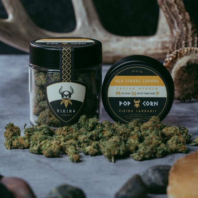 Viking's popcorn Old School Lemons delivers the same bright lemon-pine-fuel with skunky middle notes and focus, creativity, and stress-relieving effects as our premium flower at an accessible price point. These smaller, dense buds are cultivated in our Dutch greenhouses with identical care - just different sizes. Ten grams of quality sativa perfect for budget-conscious consumers who won't compromise on Viking standards.