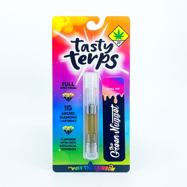 Tasty Terps sets the Gold Standard for flavored vape cartridges, combining premium Melted Diamonds with the finest, most carefully curated terpene profiles on the market. Tasty Terps spring to life on your palate, delivering a burst of flavor from initial smell to final exhale. Our full-spectrum flavored blends transfer to your taste buds with unmatched clarity.