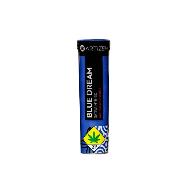A pack of 7 pre rolls by Artizen. Blue Dream is the legendary Northern California-bred, (potentially) significantly potent (THC levels reported between 15-25%), euphoric, energizing, lucid and calm, (slightly) Sativa-Dominant, daytime hybrid blend of Blueberry and Haze. Social and comforting, this sweet blueberry strain is widely considered the Gold Standard by which all others are measured.