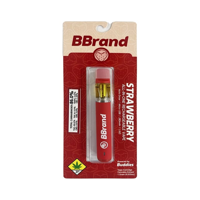 With Buddies BBrand 1g All-In-One vapes, there's nothing to forget and everything to enjoy. Providing all you'll need for a gram's worth of pleasurable puffs, our all-in-one vapes match reliable, discrete hardware with a formula that's rich in premium cannabis oil and impeccably flavored with a refreshing variety of natural plant-based terpenes. From Grape Ape to Raspberry Parfait, Buddies BBrand All-In-Ones pair fantastic flavors with maximum convenience for a product your pocket won't want to be without.