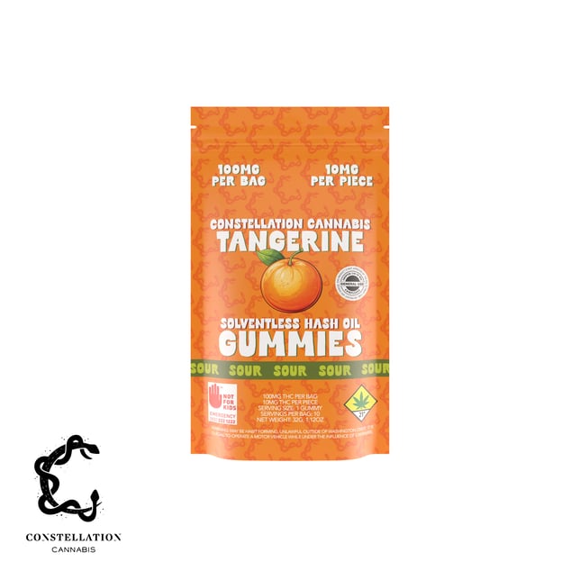 Pucker up for a burst of bold flavor with our Sour Tangerine Hash Rosin Gummies, crafted with premium solventless hash rosin for a clean and potent cannabis experience.