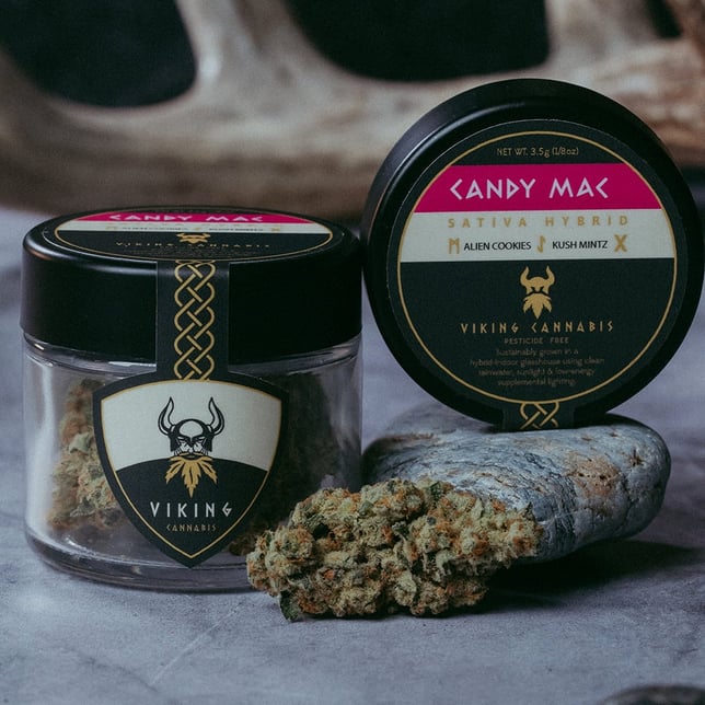 Candy Mac brings a sweet, citrus-kissed adventure to every session β a sativa crafted with Viking precision in our Dutch sun-fed greenhouses. The flavor opens bright and candied, softening into floral, earthy notes on the exhale. Its terpene blend invites a happy, relaxed, and uplifted experience beloved by consumers seeking relief from stress, anxiety, and depression. Ideal for sharing togetherness moments, daytime creativity, or a mood-lifting escape, Candy Mac is a cultivar for those who want flavor and feeling in equal measure. Expertly grown, purposefully potent, and perfectly Viking.