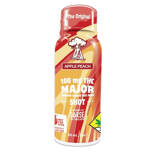 Apple Peach flavored drink (2oz), 100mg THC per bottle, 10mg THC per serving. Infused with SoRSE Technology for rapid onset! Why wait?