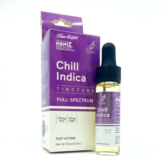 ![Chill Indica Blend [15ml] (100mg THC/20mg CBN) - Image 1 Chill Indica Blend [15ml] (100mg THC/20mg CBN) - Image 1](https://uploads.iheartjane.com/cdn-cgi/image/width=644,fit=scale-down,format=auto,metadata=none/uploads/655feb72-59cc-4ff7-b69b-415eab1eb673.png)