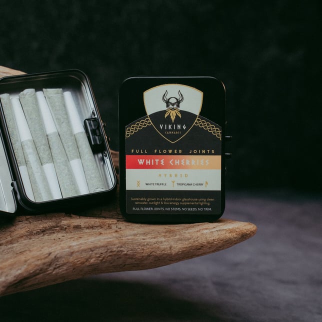 Forged from the rare union of White Truffle and Tropicana Cherry, this hybrid gleams with creamy richness and a subtle whisper of ripe cherry, delivering a smooth, decadent, otherworldly experience like walking through an orchard at dusk. White Cherries carries both royal elegance and bold fire, earning its crown as the 2025 New Leaf Bowl Winner โ Best Exotic, and standing as a legend reborn and a must-try treasure of the Viking saga.