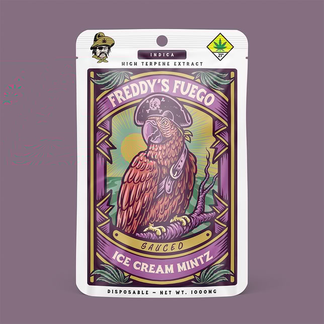 Ice Cream Cake has always been a favorite at Freddy’s Fuego and this version will be towards the opposite spectrum of our “33 Flavors” and award winning “Larrycake” encasing the ever so popular wedding cake. Adding the Kush Mints to the ICC increases potency dramatically reducing the fruity gelatos terpenes and adding in the bubba kush/animal mints earthy sandy vanilla mint flavors. The buds are extremely sticky like a guerilla glue so do not try to roll up after breaking this down. It smells like the sandy beach air with mint leaves falling from the sky.