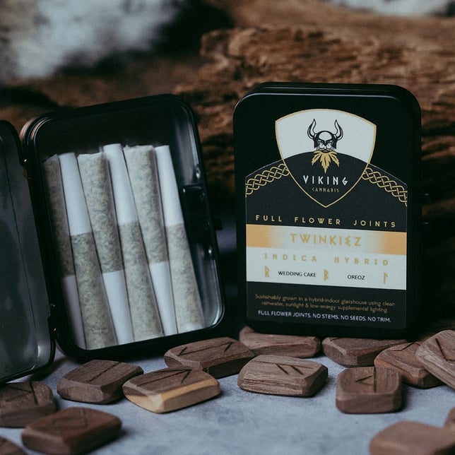 Forged from the indulgent pairing of Wedding Cake and Secret Weapon, Twinkiez rises like a frost-covered confection blessed by the gods of decadence. Its aroma swirls with creamy sweetness and subtle fuel, wrapping the senses in a warm, sugary haze that soothes the body while inviting bursts of dreamy, creative calm. To taste it is to drift through a feast hall at dusk, torchlight gleaming off golden pastries as the world softens into comfort and quiet joy. More than a strain, Twinkiez is a dessert of the Viking saga—soft, rich, and irresistibly enchanting.