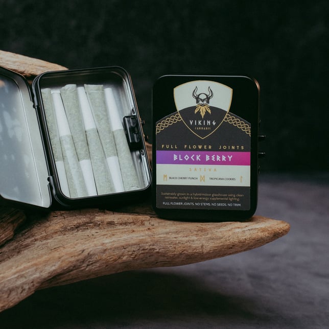 Forged from the union of Black Cherry Punch and Tropicana Cookies, this radiant sativa carries the spirit of adventure, with sweet citrus winds and berry-rich skies that lift hearts and sharpen minds like a new dawn. Its jewel-toned blossoms shimmer with the fire of harvest and victory, earning Block Berry the crown of 2025 New Leaf Bowl Champion. More than a flower, it is a saga in bloom—an experience like walking in sunlight after a storm, claiming your place in the legend of Viking Cannabis.