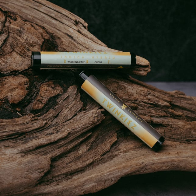 Forged from the indulgent pairing of Wedding Cake and Secret Weapon, Twinkiez rises like a frost-covered confection blessed by the gods of decadence. Its aroma swirls with creamy sweetness and subtle fuel, wrapping the senses in a warm, sugary haze that soothes the body while inviting bursts of dreamy, creative calm. To taste it is to drift through a feast hall at dusk, torchlight gleaming off golden pastries as the world softens into comfort and quiet joy. More than a strain, Twinkiez is a dessert of the Viking saga—soft, rich, and irresistibly enchanting.
