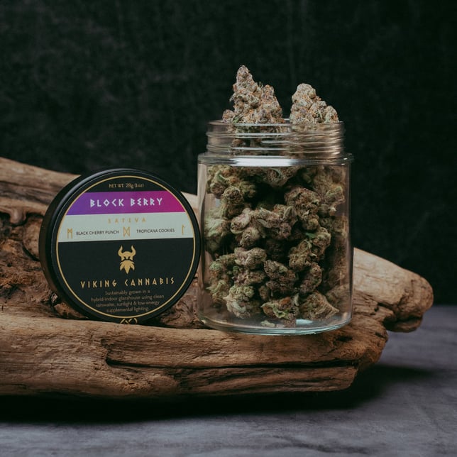 Forged from the union of Black Cherry Punch and Tropicana Cookies, this radiant sativa carries the spirit of adventure, with sweet citrus winds and berry-rich skies that lift hearts and sharpen minds like a new dawn. Its jewel-toned blossoms shimmer with the fire of harvest and victory, earning Block Berry the crown of 2025 New Leaf Bowl Champion. More than a flower, it is a saga in bloom—an experience like walking in sunlight after a storm, claiming your place in the legend of Viking Cannabis.