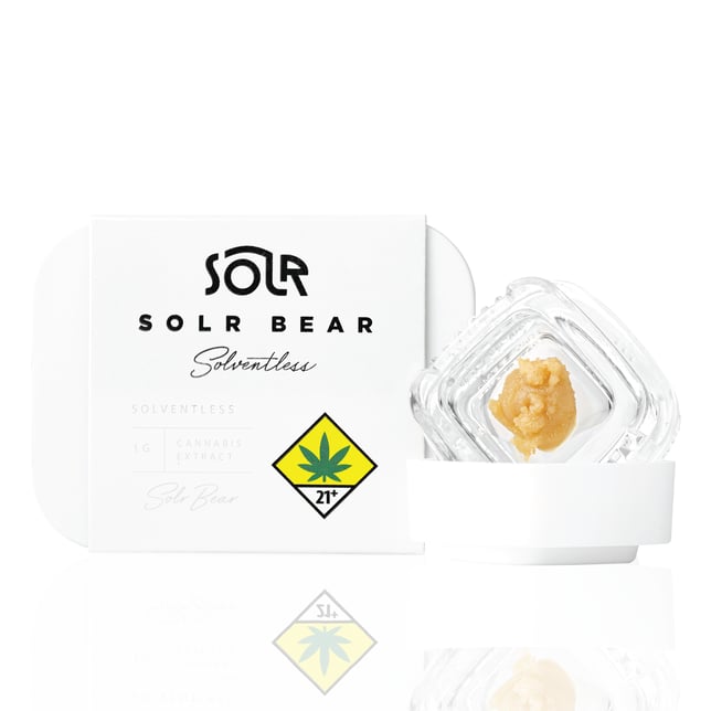 Solr Bear Solventless Live Rosin Badder is whipped into a delectable consistency that is lush with terpene-rich sauce, yet easy to use in a dab rig or dab pen. Enjoy at low-temperatures for maximum cannabis flavor and smoothness. Store cold to preserve the terpenes.