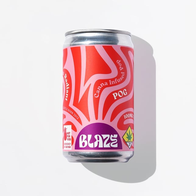Passionfruit, Orange, and Guava flavored soda infused with Live Resin. 100mg THC per bottle, 10mg per serving.