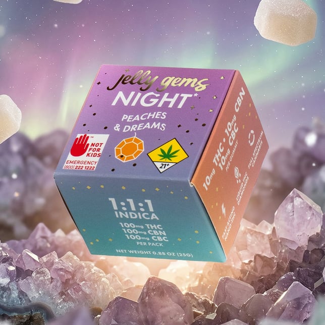 Jelly Gems are meticulously crafted gummies made with full-spectrum, fast acting liquid diamond nano-THC, enhanced with minor cannabinoids. Each formulation is uniquely tailored for a specific entourage effect. 15 delicious flavors for 15 different moods in 5 categories, Party, Happy, Flow, Chill & Night. Free of Gluten, Corn Syrup, Gelatin, Soy, Artificial Dyes, Pesticides & Heavy Metals. 100% Vegan.