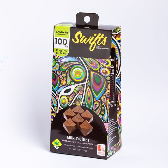 When life hands you a bag of Swifts chocolates, step outside of the box and turn the music up. The rich whipped crème chocolate ganache, wrapped in an artisan shell, melts the day away leaving you deliciously free.