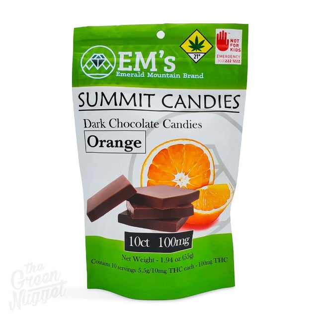 Summit Candies Chocolate squares offer unique THC experience made with Emerald Mountain’s finest garden ingredients. Designed for quick activation, Summit Candies offers a variety of flavors, a unique THC experience, and no green taste. Taste the joy, not the weed. There are ten simple squares of potent mouth melting chocolate in every bag of Summit Candies. Ten opportunities to take your mind and body to the summit. Ten opportunities to explore, to dream, to activate, to release, to express. They vibe with you; Summit Candies by Emerald Mountain.