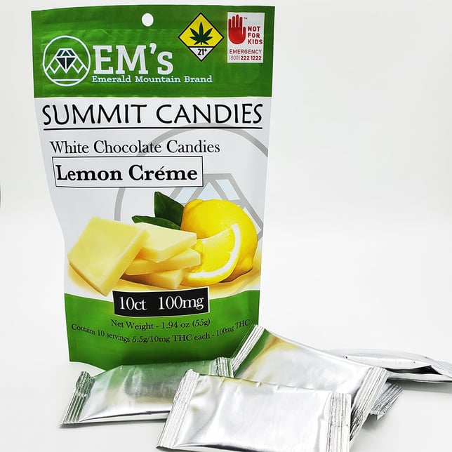 Summit Candies Chocolate squares offer unique THC experience made with Emerald Mountain’s finest garden ingredients. Designed for quick activation, Summit Candies offers a variety of flavors, a unique THC experience, and no green taste. Taste the joy, not the weed. There are ten simple squares of potent mouth melting chocolate in every bag of Summit Candies. Ten opportunities to take your mind and body to the summit. Ten opportunities to explore, to dream, to activate, to release, to express. They vibe with you; Summit Candies by Emerald Mountain.