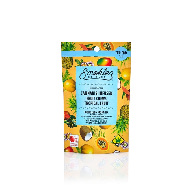 NEW! Smokiez™ Tropical Fruit CBD:THC 1:1 Fruit Chews are NOT YOUR AVERAGE FRUIT CHEWS™ ;)