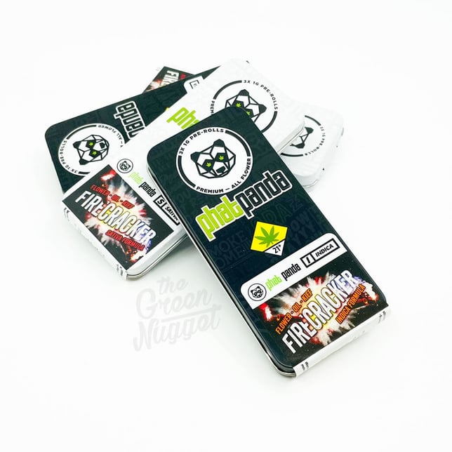 (Cones) - A 3pk of our 1g Panda kief dusted/oil infused pre-rolls. (Indica) - Big Bud x Purple Urkle (Flavors: Earthy, Woody, Sweet & Grape), (Effects: Relaxing, Drowsy & Hungry)